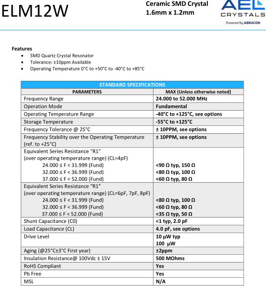 AEL晶振,ELM12W晶振,ELM12W-24.000MHz-6-R120-D7X-T晶振