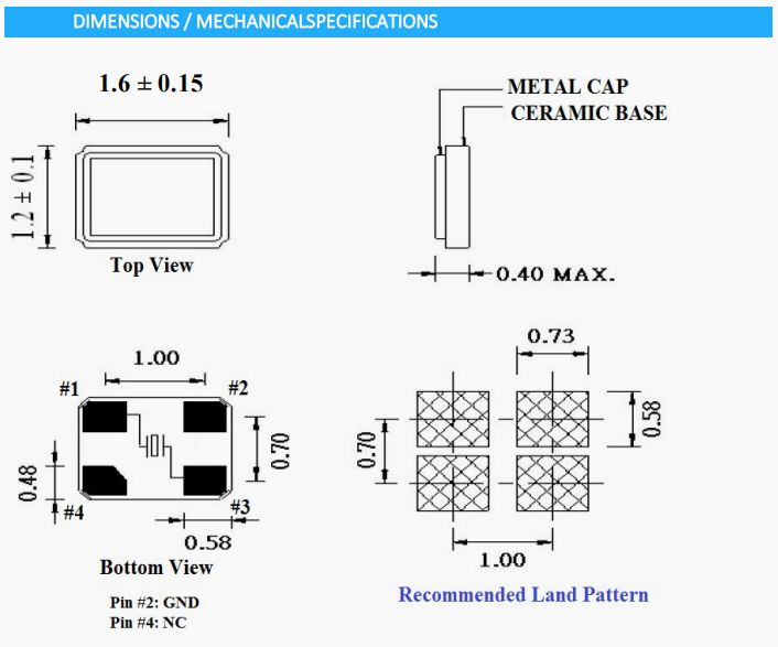 | Shunt Capacitance (C0) | <1 typ, 2.0 pF |