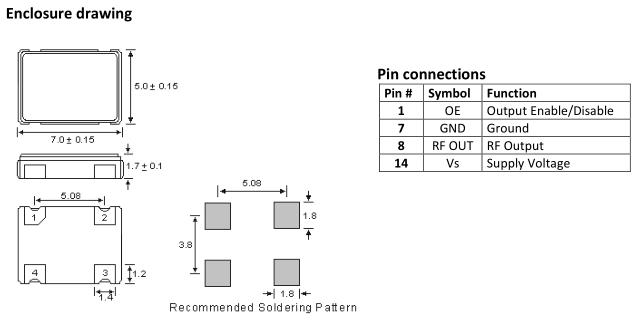 | Enclosure (see drawing) (LxWxH) | 7.15x5.15x1.8 max. | mm | IEC 61837‐2 | ||