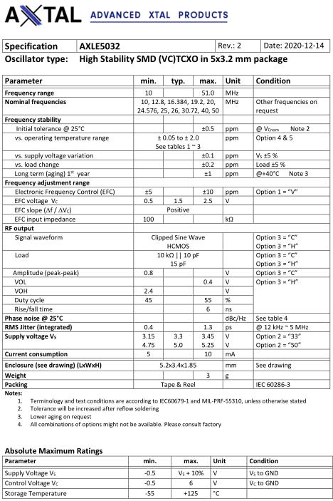 AXTAL晶振,AXLE5032晶振,AXLE5032-V-5-C-05-4F_Rev.2-10.000MHz晶振