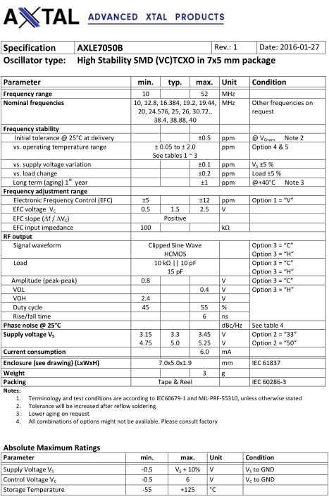 AXTAL晶振,AXLE7050B晶振,AXLE7050B-V-5-C-05-4F_Rev.1-16.000MHz晶振