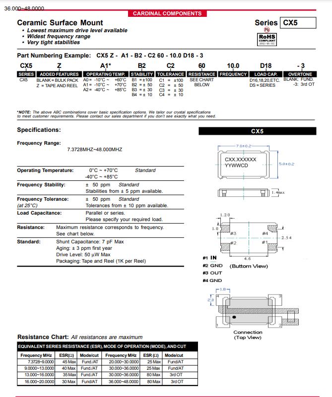 | Cardinal晶振規格 | 單位 | CX5晶振頻率范圍 | 石英晶振基本條件 |