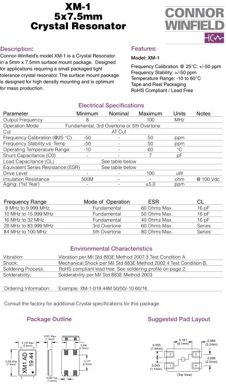 ConnorWinfield晶振,XM-1晶振,XM-1-016.00M-50-50/10-60/16晶振