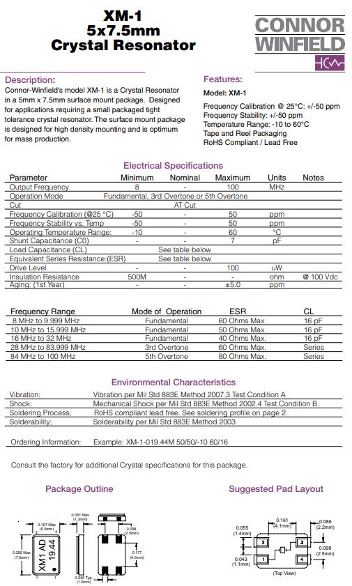 ConnorWinfield晶振,XM-1晶振,XM-1-016.00M-50-50/10-60/16晶振,貼片晶振本身體積小,超薄型石英晶體振蕩器,特別適用于有目前高速發展的高端電子數碼產品,因為晶振本身小型化需求的市場領域,小型,薄型是對應陶瓷振蕩器(偏差大)和普通的石英晶體振蕩器(偏差小)的中間領域的一種性價比較出色的產品.產品廣泛用于筆記本電腦,無線電話,衛星導航SSD,USB,Blu-ray等用途,符合無鉛焊接的高溫回流焊曲線特性.