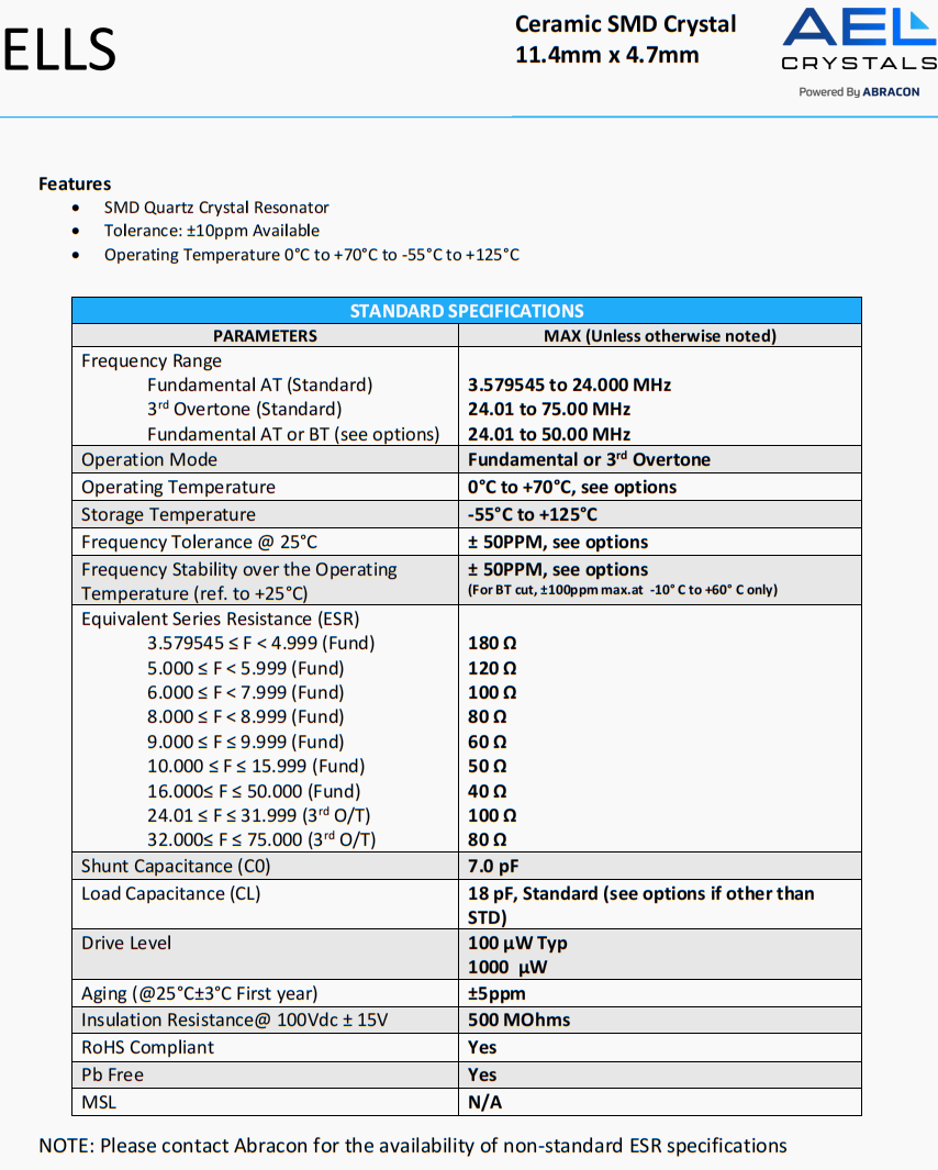 | 原廠型號 Originalmodel: | ELLS-4.000MHz-16-R120-B1X-F-T | 品牌brand: | AEL Crystals |