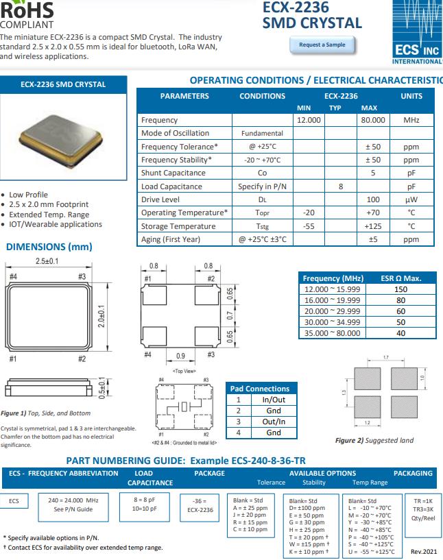 ECS-270-8-36CKM-TR晶振 參數表| ECSXTAL晶振 | 單位 | ECX-2236晶振 | 石英晶振基本條件 |