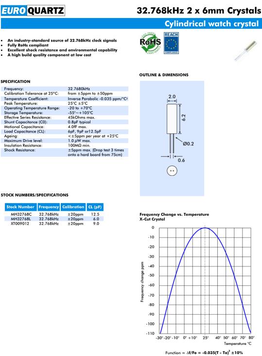 Euroquartz晶振,2*6晶振,圓柱晶振