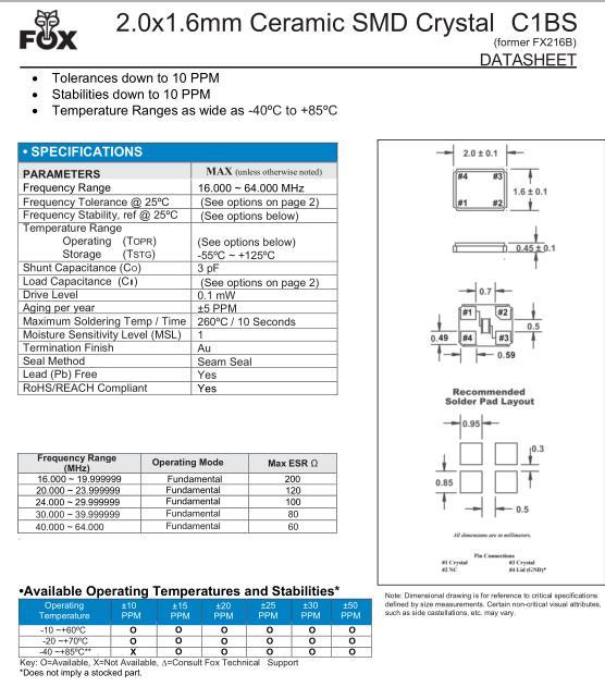 | FOX晶振規格 | 單位 | C1BS晶振頻率范圍 | 石英晶振基本條件 |
