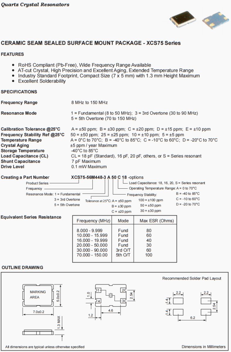 | 老化 | ±5 ppm / year Maximum |