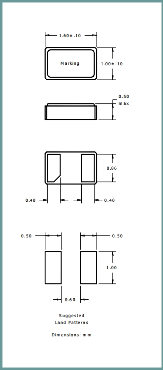 - 尺寸:1.6*1.0mm