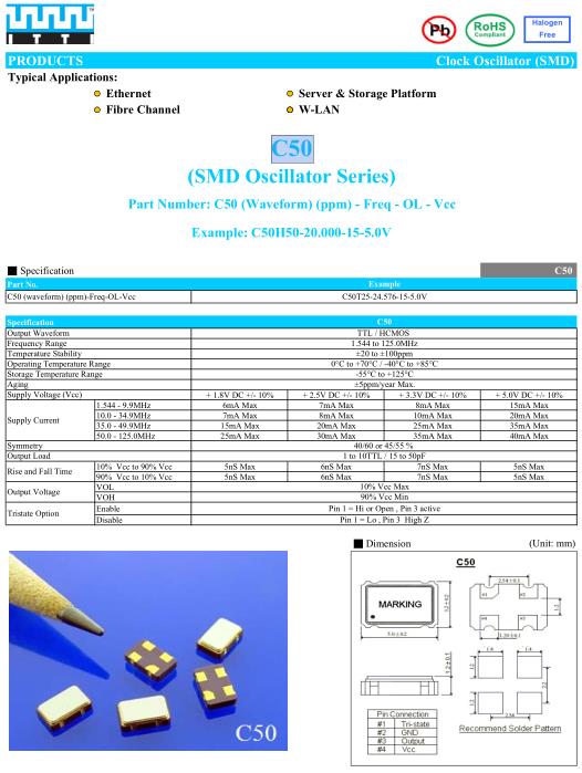 ITTI晶振,C50晶振,C50H50-20.000-15-5.0V晶振