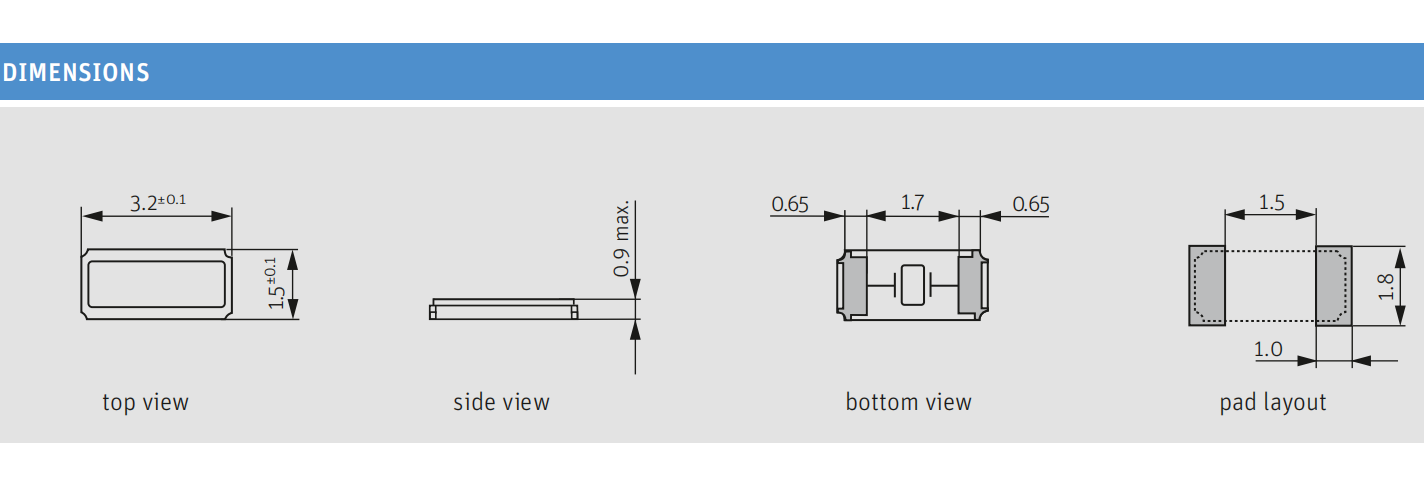 Q 0.032768-JTX310-7-20-T2-HMR-LF,3215mm,Jauch時鐘晶振,音叉晶體,尺寸圖
