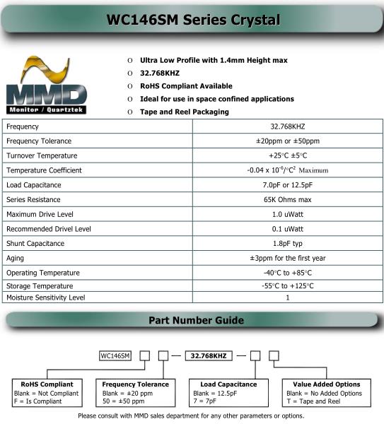 | MMDCOMP晶振規(guī)格 | 單位 | WC146SM晶振頻率范圍 | 石英晶振基本條件 | |