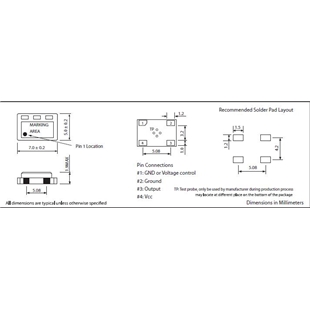 | Control Voltage (Vc) | 2.5±2.0 VDC for Vcc = 5 VDC; 1.65±1.5 VDC for Vcc = 3.3 VDC |
