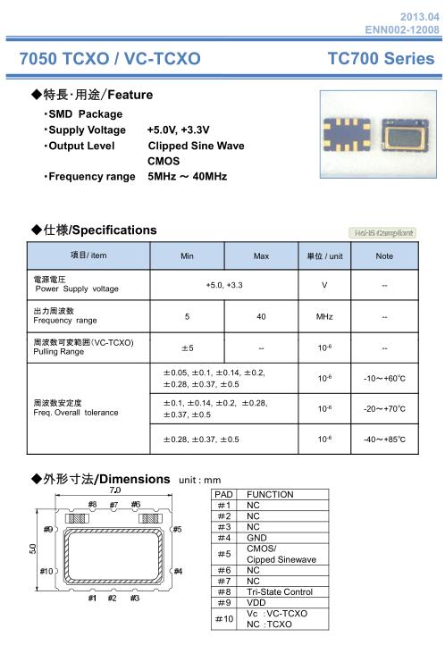 NAKA晶振,TC700晶振,溫補(bǔ)晶振