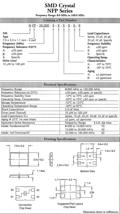 NEL晶振,NFP晶振,NFP-30.000-B10µW-ABB-32pF晶振,貼片晶振本身體積小,超薄型石英晶體振蕩器,特別適用于有目前高速發展的高端電子數碼產品,因為晶振本身小型化需求的市場領域,小型,薄型是對應陶瓷振蕩器(偏差大)和普通的石英晶體振蕩器(偏差小)的中間領域的一種性價比較出色的產品.產品廣泛用于筆記本電腦,無線電話,衛星導航SSD,USB,Blu-ray等用途,符合無鉛焊接的高溫回流焊曲線特性.