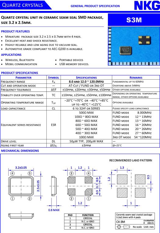 NKG晶振,S3M晶振,S3M-10.0000F-18E2-EXT晶振,超小型表面貼片型SMD晶振,最適合使用在汽車電子領(lǐng)域中,也是特別要求高可靠性的引擎控制用CPU的時(shí)鐘部分.低頻晶振可從7.98MHz起對(duì)應(yīng),小型,超薄型具備強(qiáng)防焊裂性,石英晶體在極端嚴(yán)酷的環(huán)境條件下也能發(fā)揮穩(wěn)定的起振特性,產(chǎn)品本身具有耐熱,耐振,耐撞擊等優(yōu)良的耐環(huán)境特性,滿足無(wú)鉛焊接以及高溫回流溫度曲線要求,符合AEC-Q200標(biāo)準(zhǔn).該公司最初是作為石英晶體單元和陶瓷基產(chǎn)品(如陶瓷諧振器和濾波器)的貿(mào)易商。在接下來(lái)的幾年中,更多的頻率控制產(chǎn)品被添加到產(chǎn)品組合中,以提供更廣泛的產(chǎn)品系列。所有類型的基于石英晶體的時(shí)鐘振蕩器和VCXO,以及高端產(chǎn)品,如TCXO和SAW型產(chǎn)品,都被提供給越來(lái)越多的客戶。