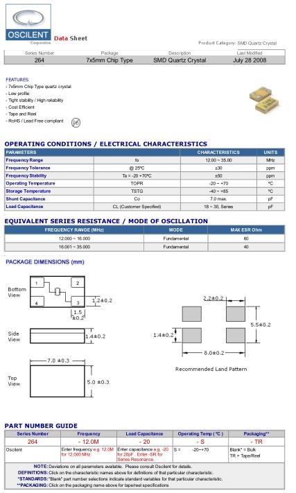 Oscilent晶振,264晶振,264-12.0M-20-S-TR晶振
