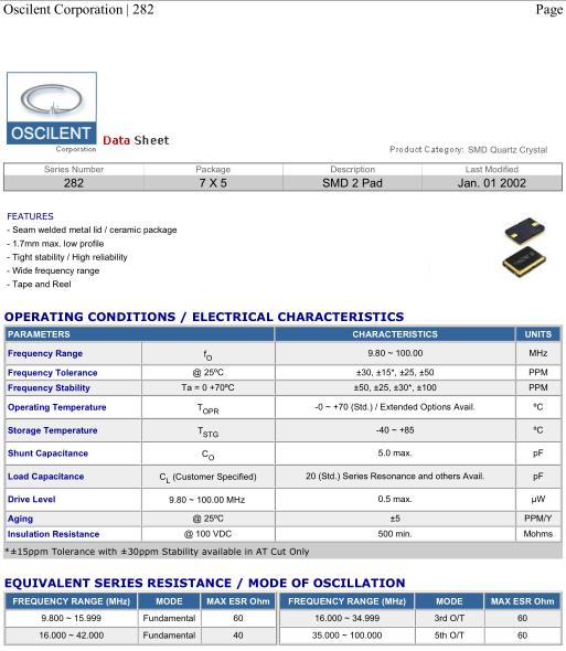 Oscilent晶振,282晶振,282-12.0M-SR-50-N-U-TR晶振,貼片晶振本身體積小,超薄型石英晶體振蕩器,特別適用于有目前高速發展的高端電子數碼產品,因為晶振本身小型化需求的市場領域,小型,薄型是對應陶瓷振蕩器(偏差大)和普通的石英晶體振蕩器(偏差小)的中間領域的一種性價比較出色的產品.產品廣泛用于筆記本電腦,無線電話,衛星導航SSD,USB,Blu-ray等用途,符合無鉛焊接的高溫回流焊曲線特性.Oscilent晶振公司發展歷程: