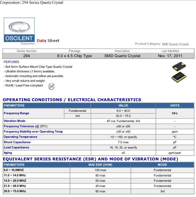 Oscilent晶振,294晶振,294-10.0M-30GR-TR晶振