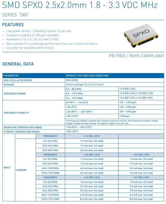 彼得曼晶振,SXO-02502晶振,SXO18-02502-SE20M-27.000MHz-T晶振,有源晶振,是指晶體本身起振需要外部電壓供應,起振后可直接驅動CMOS集成電路,產品本身已實現與薄型IC(TSSOP封裝,TVSOP封裝)同樣的1mm厚度,斷開時的消費電流是15µA以下,編帶包裝方式可對應自動搭載及IR回流焊接(無鉛對應)產品有幾種電壓供選1.8V,2.5V,3V3.3V,5V,以應對不同IC產品需要.PETERMANN-TECHIK 代表質量和創新。有了我們,您可以從一個來源獲得一切。從我們內部工程部門的合格設計服務到 具有卓越、一致的質量和性能的創新產品。利用經驗豐富的專家的專業知識,他們會根據您的個人要求和標準為您提供有根據的產品選擇建議。此外,我們將自己視為客戶的創新合作伙伴公司專業于時鐘領域, 以為客戶提供最佳支持和快速上市為目標.因此,我們始終致力于發展超越競爭對手的競爭優勢和價值優勢,以便為我們的客戶確保這些優勢。最大限度地提高客戶滿意度是我們的宗旨,所有運營活動和行動的重點。您可以從目前最廣泛和最深入的頻率產生元件產品系列中進行選擇,例如振蕩石英晶體、石英和硅振蕩器,并受益于我們高度全面的技術支持 . 這種組合是獨一無二的。