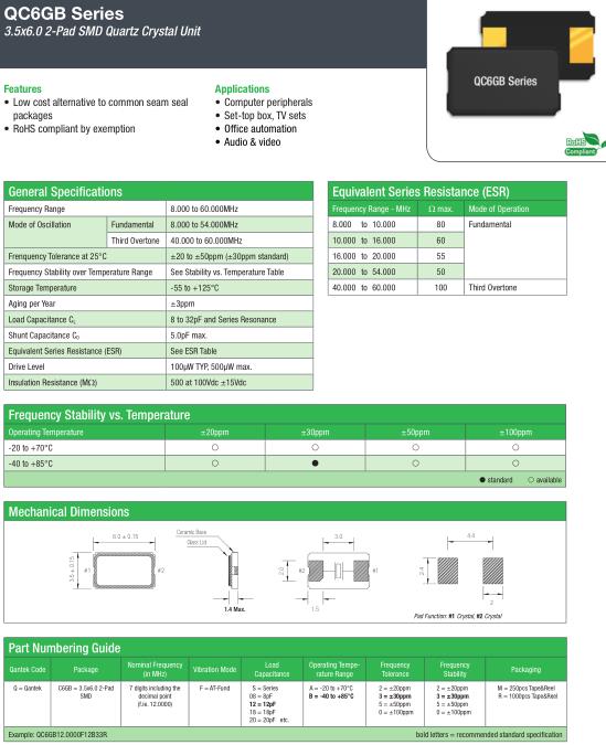 QANTEK晶振,QC6GB晶振,QC6GB12.0000F12B33R晶振