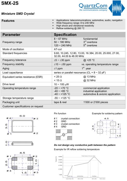 | QuartzCom晶振規格 | 單位 | SMX-2S晶振頻率范圍 | 石英晶振基本條件 |