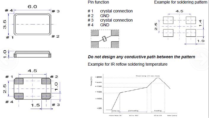 在一個不同擴張系數電路板(環氧玻璃)上焊接陶瓷封裝石英晶振時,在溫度長時間重復變化時可能導致端子焊接部分發生斷裂,請事先檢查焊接特性。QuartzCom晶振,SMX-2S晶振,音響專用晶振.