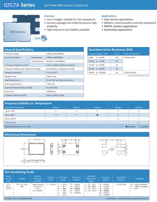 Quarztechnik晶振,QTC7A晶振,QTC7A12.0000FBT3I30R晶振
