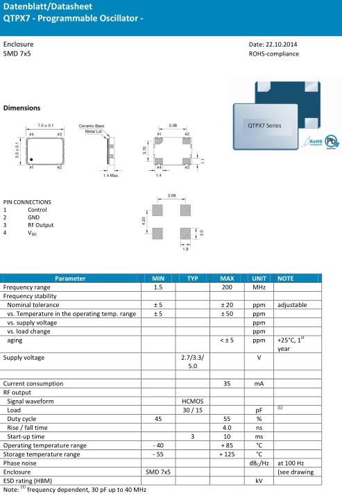 Quarztechnik晶振是德國先進頻率控制元器件供應商代表,從業50多年來,Quarztechnik Crystal一直處于技術前沿的地位,夸克晶振是翻譯后的中文名字,目前在中國大陸市場嶄露頭,漸漸被業界更多人知道Quarztechnik晶振,并得到市場的認可,一直致力于研發生產更多優質的晶振產品,包括有源晶振,差分晶振以及石英晶體振蕩器等產品.Quarztechnik晶振,QTPX7晶振,7050mm有源晶振.