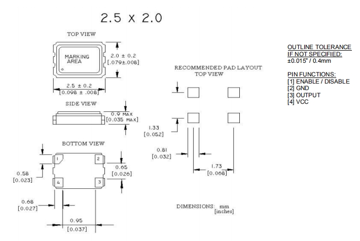 Pin 1: High or Open >> Output enabled Pin 3 Pin 1: Low >> Output disabled (High impedance) |