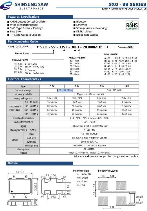 SHINSUNG晶振,SXO-SS晶振,SXO-SS-33ST-30F3-20.000MHz晶振