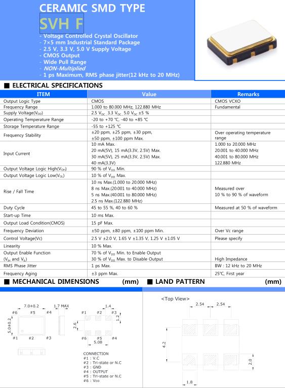 | RMS Phase Jitter | 1 ps Max. | BW : 12 kHz to 20 MHz |