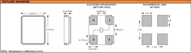 | 頻率老化 | f_age | ±2 × 10-6 / year Max. | +25°C,第一年 | |
