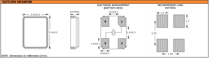 | 頻率老化 | f_age | ±2 × 10-6 / year Max. | +25°C,第一年 | |