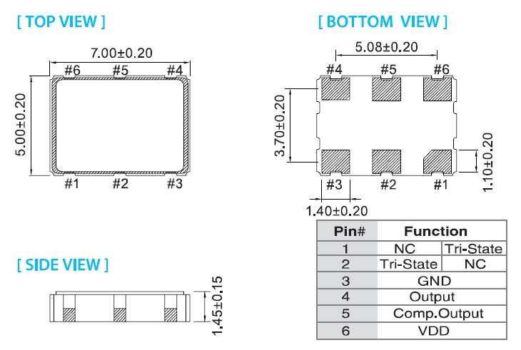 貼片封裝工業(yè)標(biāo)準(zhǔn)尺寸:7 x 5mm的(OT-M),5×3.2mm的(OW-M)的