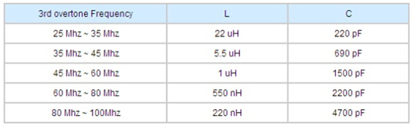 晶體具有多種振動模式,如基頻, 3次泛音,5次泛音等等.當基頻模式應用時,石英晶體的電阻是最低的,這意味著它是最簡單的晶體振蕩.當第三色調模式被應用,一個放大電路必須被利用以降低基本模式的頻率反饋到所述延伸小于所述第三音調模式.因此,如果頻率是只有三分之一的目標頻率時,要檢查是否放大處理電路被施加或它的設定值就足夠了,因為電路的環境適合于基本模式,而不是第三次泛音調模式.該電路可能不振蕩,如果放大電路不施加或它的設定值是不足夠的.基頻模式與三次泛音模式應用程序如下: