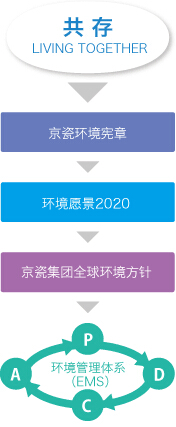 京瓷集團自成立以來,始終秉承“敬天愛人”這一社訓,將“與社會和諧共存”、“與世界和諧共存”、“與自然和諧共存”這3個“共存(LIVING TOGETHER)”作為所有企業活動的基礎,在兼顧環保和經濟效益的同時,舉全集團之力開展可持續發展的“環境經營”.