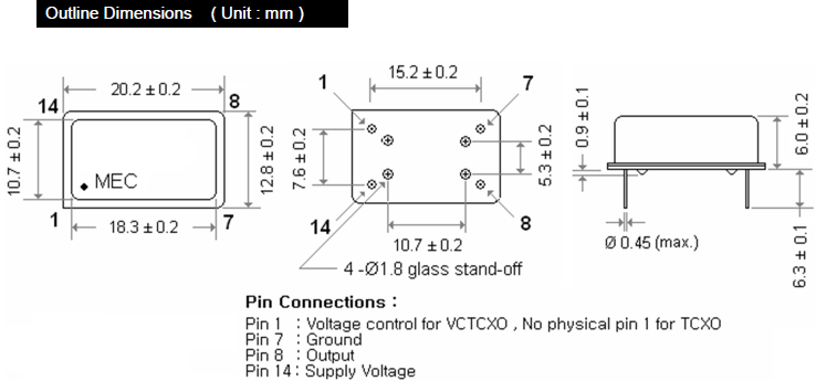 (2) 晶振生產(chǎn)廠家在設(shè)計(jì)時(shí)請(qǐng)參考相應(yīng)的推薦封裝MERCURY晶振,溫補(bǔ)晶振,M14T晶振,TCXO晶振。