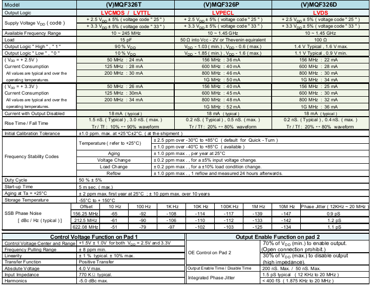 MERCURY晶振,溫補(bǔ)晶振,MQF326晶振,TCXO有源晶振