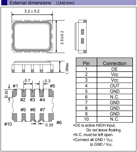 - 尺寸:3.2x2.5x1.0mm