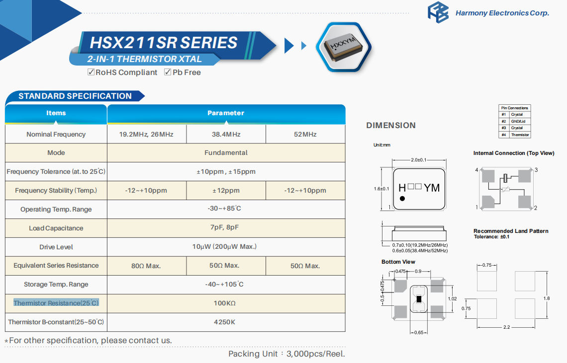 X2U026000BZ1HZ-DHPZ晶振,HELE熱敏晶振,航天飛行器晶振,臺灣HELE晶振公司,加高晶振,SMD晶振,熱敏晶振,小尺寸晶振,2016晶振,高品質晶振,低損耗晶振,高精度晶振,貼片晶振,石英晶體,無源晶振,四腳晶振,無人機晶振,北斗衛星晶振,電腦主板晶振,智能穿戴設備晶振,醫療設備晶振,特點:微型超薄SMD產品尺寸。高精度、可靠性高,耐熱性好。針對射頻應用、無線模塊設備、RFID應用和其他基于消費者的產品的優化解決方案。