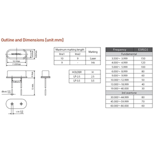 | 希華晶振參數 | 插件晶振LP-2.5,LP-3.5 |