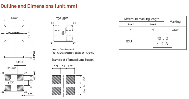 | 頻率老化 | ±15 ×10-6 / year Max. |